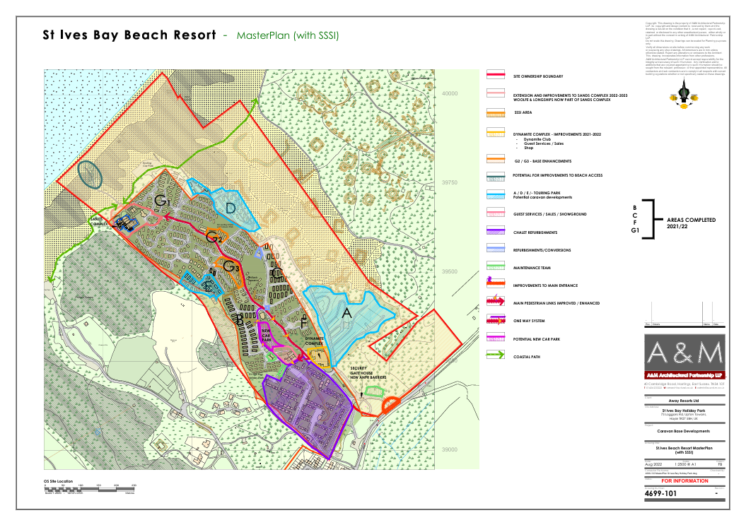 St Ives Bay Beach Resort Masterplan: An Away Resorts caravan park located in Cornwall. The masterplan shows the proposed developments for new caravan areas and amenities, networking and landscaping